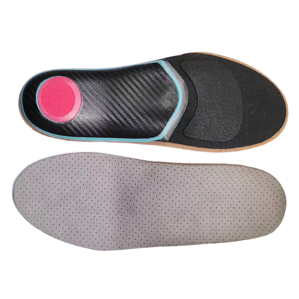 Conçues pour une stabilité et un confort ultimes, ces semelles haut de gamme combinent la rigidité légère d'une plaque en fibre de carbone avec la respirabilité du cuir microfibre perforé. Destinées aux athlètes et aux professionnels exigeant un soutien supérieur de la voûte plantaire et une absorption des chocs, elles offrent un équilibre parfait entre performance et santé du pied. -