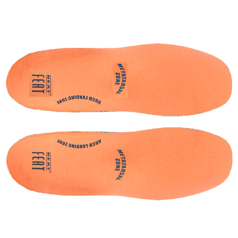 Matériaux : Polyuréthane (PU) de qualité médicale + Dessus en Mesh respirant. Description : Découvrez un soutien spécialisé avec les semelles NEAT FEAT en PU haute résilience. Spécifiquement conçues pour répondre à la fatigue du milieu du pied, ces semelles disposent d'un système de soutien ciblé pour la voûte médiale et la « poche » métatarsienne (la zone creuse du milieu du pied). Fabriquées en PU haute densité de première qualité, elles offrent un mélange parfait d'amorti réactif et de stabilité structurelle. Conçues pour ceux qui passent de longues heures debout, ces semelles réalignent le pied dans sa position naturelle, soulageant la pression et prévenant les douleurs courantes liées aux pieds plats ou à l'affaissement de la voûte. -